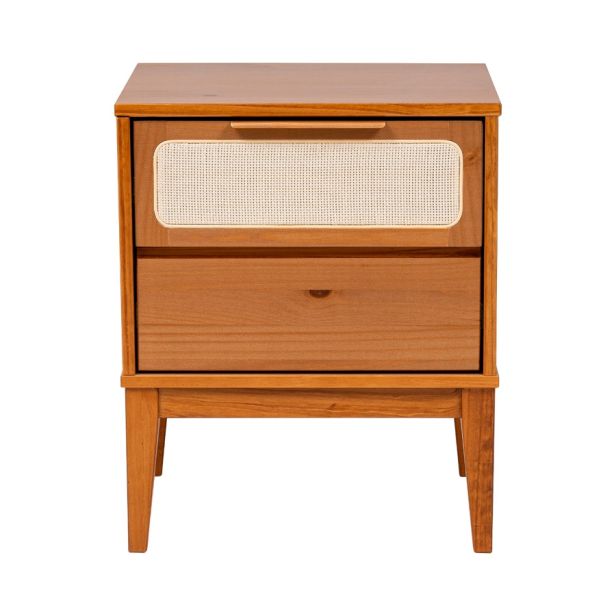 Produto entregue desmontado (acompanha manual de montagem). Garantia de 3 meses (contra defeitos de fabricação). Fabricado em madeira maciça certificada FSC Pinus Taeda. Possui duas gavetas, sendo a primeira com palha natural trama leve, e a segunda em madeira maciça. Ambas possuem corrediças telescópicas, que garantem a abertura total da gaveta. Puxador de madeira. Pintura PU e UV. Altura do chão até o tampo: 61cm. Peso: 10,7kg. Capacidade suportada: 16kg.