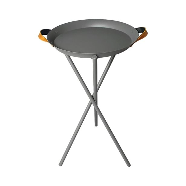 Entregue montada. Base em aço carbono com acabamento em pintura eletrostática a pó (tinta poliéster e micro textura fosca), maior durabilidade e qualidade. Bandeja removível em alumínio com alça de couro legítimo. Garantia de 90 dias contra defeitos de fabricação. Peso: 3 kg. Capacidade suportada: 20 kg.